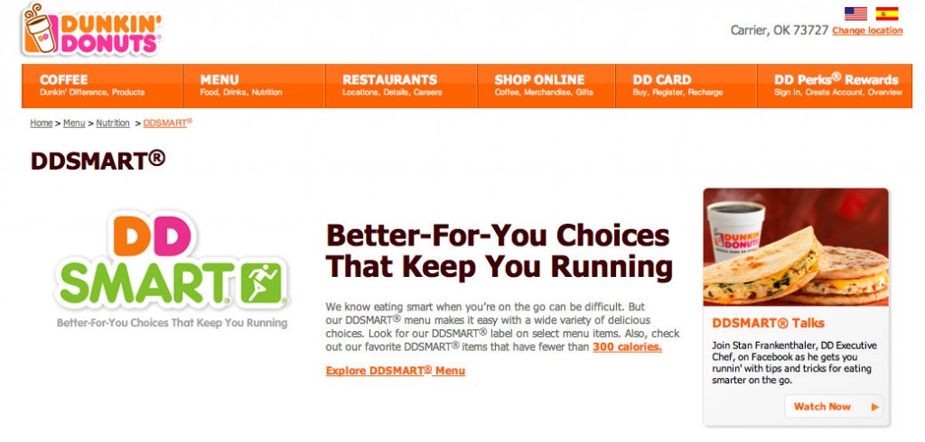 - A Dunkin’ Donuts le van las campañas en la Web 2.0, de las que ha sacado excelentes resultados en productos más relacionados con su esencia calórica. Si ya les ha funcionado con un producto criticable, no hay margen de error en un producto saludable.